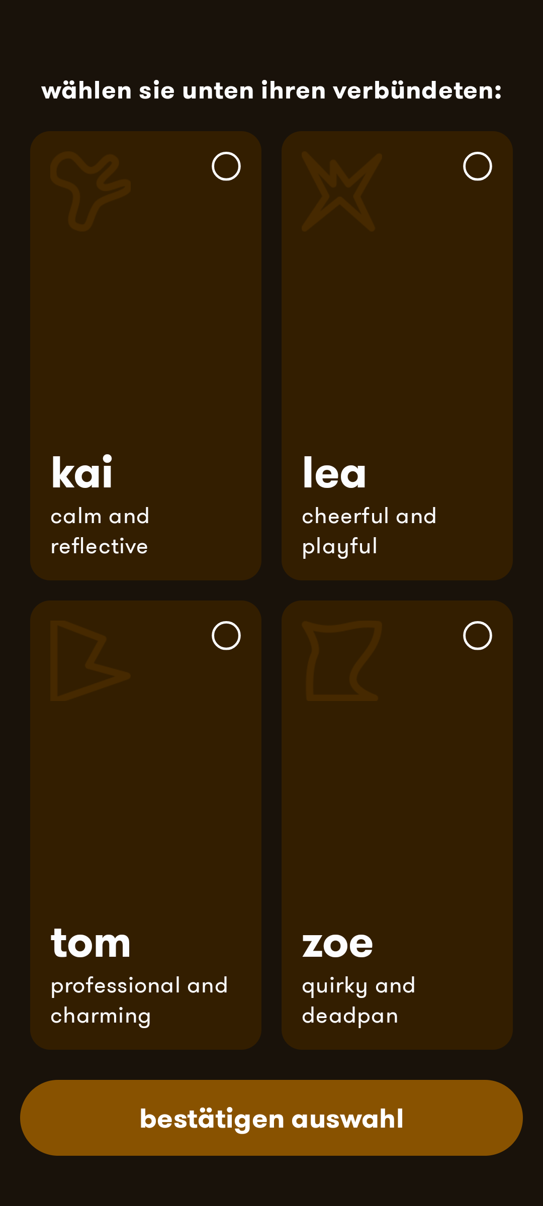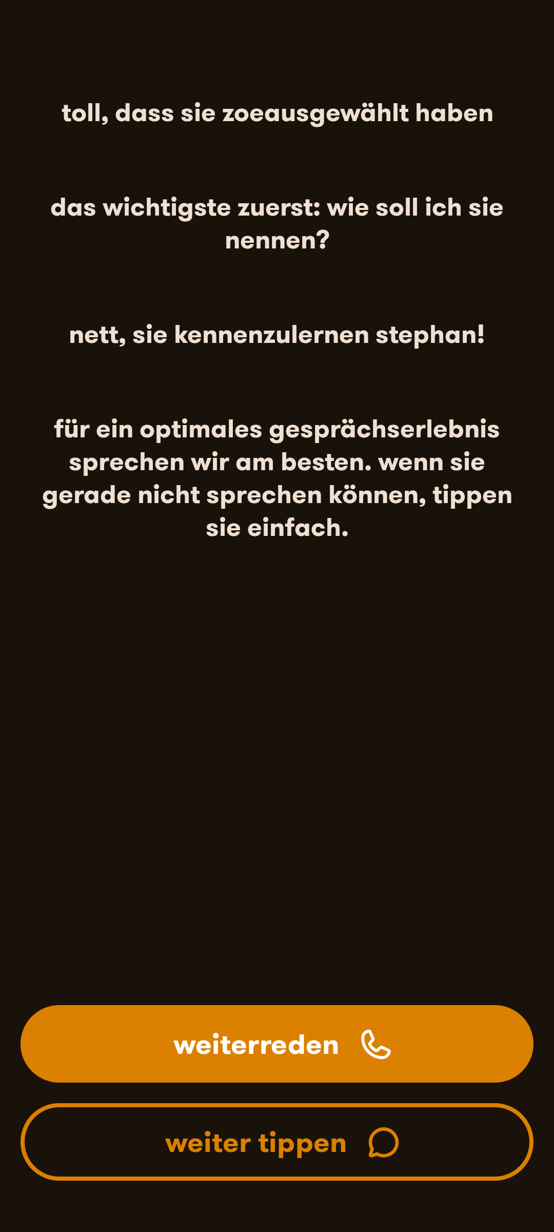 Als Erstes startet Ally mit einer Einführung und man soll zunächst einen der vier Allys wählen. Anschließend wird man nach dem Namen und einigen Angaben gefragt, was man mag, was man nicht mag und ob es sonst noch was gibt. Lustig, der eingeblendete Text ist auf deutsch, die Stimme spricht aber englisch. Wer das nicht versteht, wählt am besten den Chatmodus und schreibt. Das alles vermittelt zwar ein Gefühl für Ally und kostet viel Zeit, wird aber im anschließend erstellten Konto nicht hinterlegt. Man kann das überspringen, in dem man angibt ein Konto zu haben, dass wenn nicht vorhanden automatisch erstellt wird.