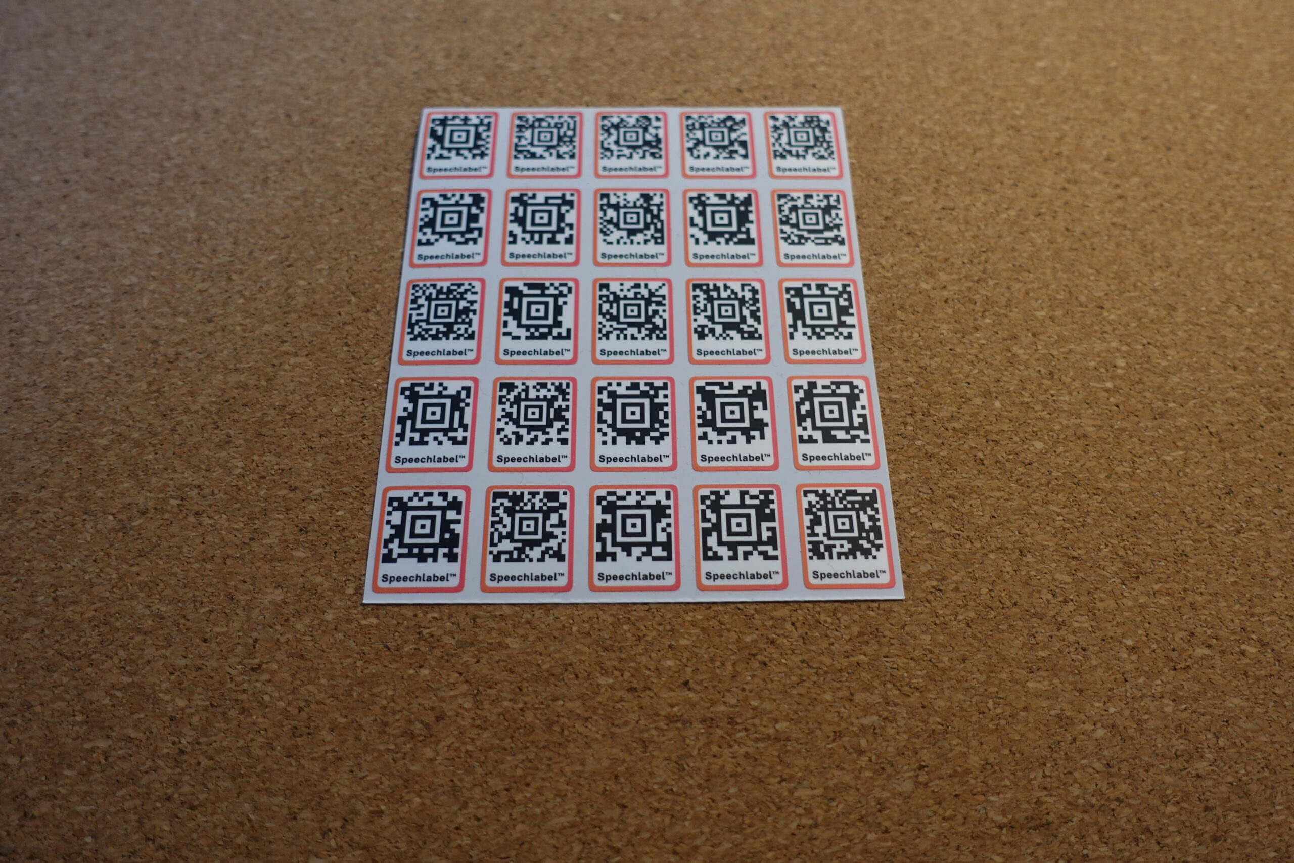Die 20 Lebensmittelaufkleber arbeiten mit einem QR-Code und sind auf einem Blatt mit fünf mal vier Reihen angebracht. Aufgeklebt lassen sie sich gut ertasten und sind dünn genug, so dass man sie an Flaschen oder Gläsern anbringen kann. Sie sind wasserfest und zur Identifikation wird die Kamera des Smartphones verwendet, Sichtkontakt ist somit nötig. Aufgrund des recht weiten Erfassungsbereichs heutiger Smartphones sollte man die Labels örtlich daher nicht zu nah beieinander platzieren.